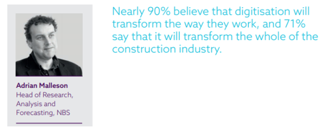 The report is a mixture of an analysis of the survey and also some opinion pieces from small, medium and large sized organisations that are pushing the boundaries with technology in the industry. We also received a thought-leadership piece from Microsoft (rather than single out one of the construction tech firms that more traditionally lead the design tech or construction tech spaces).
